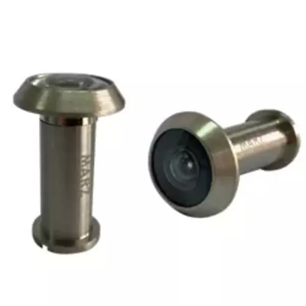 ชื่อเรียกสินค้า ตาแมว MARZ มาร์ส คุณลักษณะสำคัญ บานพับผลิตจาก Satin Nickel สีนิเกิลด้าน มุมมอง 180º ขนาดรูเจาะ Ø14 มม. เหมาะสำหรับประตูหนา 33 – 50 มม.
