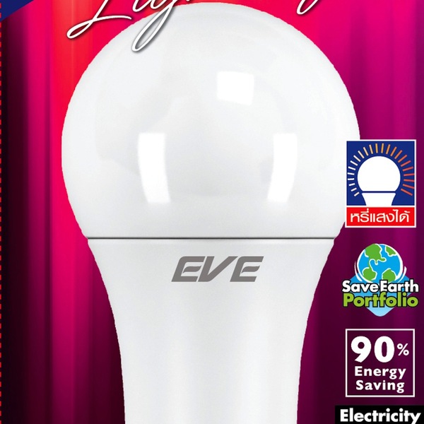 หลอดไฟ LED E27 9 วัตต์ วอร์มไวท์ ทรงลูกแพร์ EVE Bulb Dimmable