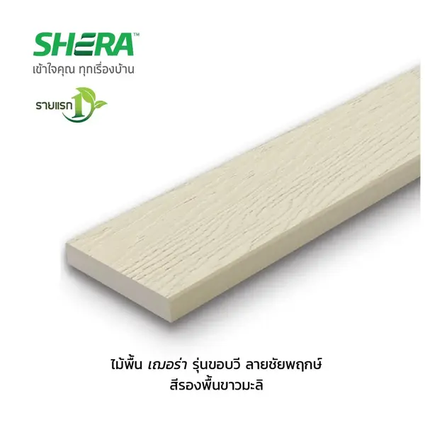 ไม้พื้นเฌอร่า 8 นิ้ว สีรองพื้นขาวมะลิ ลายชัยพฤกษ์ ขอบวี