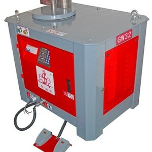 เครื่องตัดเหล็กปลอกคาน รุ่น GW32P ยี่ห้อ DIMEC ความสามารถในการดัด (ub≤450MPa) 4--32mm (ub≤650MPa) 4--28mm, ความเร็วในการทำงาน 32R / นาที (90 °), 28R / นาที (135 °), พลังของมอเตอร์ 3Kw-4P