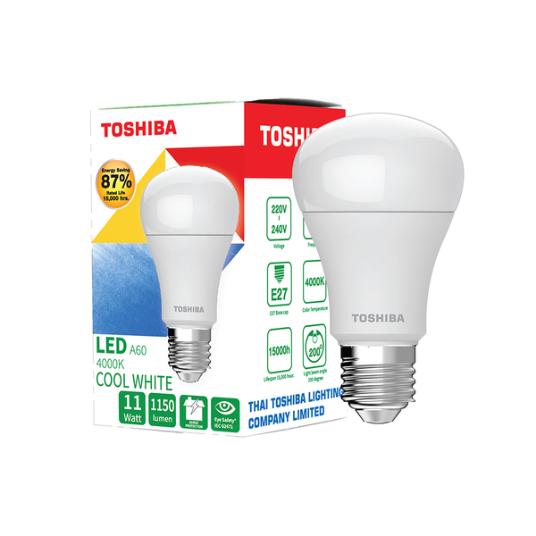 หลอดไฟ LED E27 11 วัตต์ คูลไวท์ ทรงลูกแพร์ TOSHIBA A60 G7