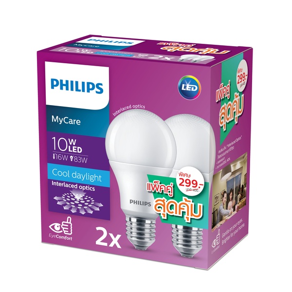 หลอดไฟ LED E27 10 วัตต์ เดย์ไลท์ ทรงลูกแพร์ PHILIPS BULB A60