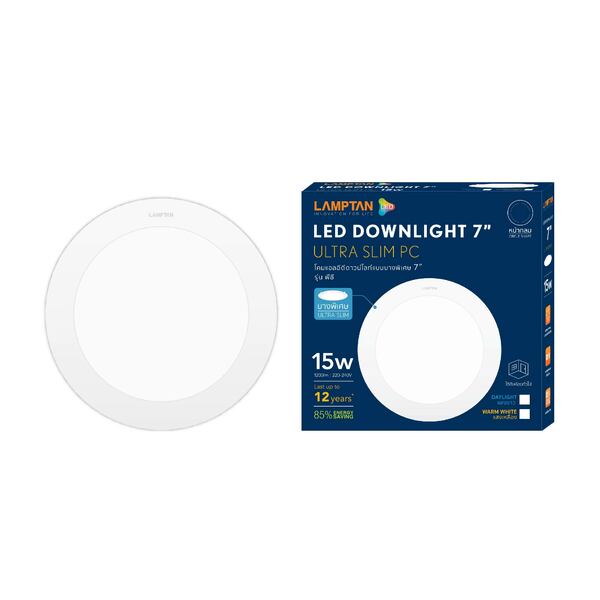 ดาวน์ไลท์ LED LAMPTAN ULTRA SLIM PC 15 วัตต์ DAYLIGHT 7 นิ้ว สีขาว กลม