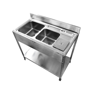 SANKI ชั้นอ่างซิงค์หลุมคู่ มีถังขยะ