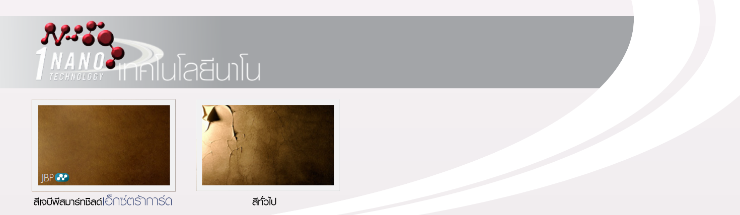 และด้วยนาโนเทคโนโลยีจากกาวอะครีลิคเกรดพิเศษ ทำให้ฟิล์มสีมีปฏิกริริยาเคมีสมบูรณ์แบบ จนเกิดโครงส้รางที่แข็งแกร่ง ช่วยให้โมเลกุลสีแทรกซึมลึกและประสานกันเป็นเนื้อเดียวกับผนังปูนให้ฟิล์มสียึดเกาะกับผิวปูนได้ดียิ่งขึ้น สามารถปกป้องบ้านได้นานกว่าสีทั่วไป