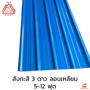 แผ่นสังกะสี ลอนเหลี่ยม สีน้ำเงิน ตรา 3ดาวขนาดต่างๆ