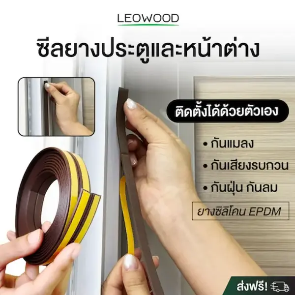 ซีลยางประตู-หน้าต่าง ยางซิลิโคน EPDM Leowood ยาว 5 เมตร สีน้ำตาลเข้ม