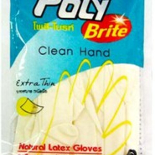 ถุงมือยางอนามัย POLY-BRITE EXTRA THIN SIZE M สีขาว