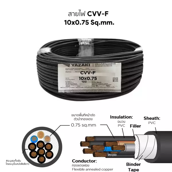 สายไฟ CVV-F 10x0.75 ตร.มม. YAZAKI