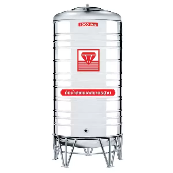 ถังเก็บน้ำสแตนเลส ตราเพชร 1000 ลิตร รุ่นพื้นนูน ทรงสูง DMCX