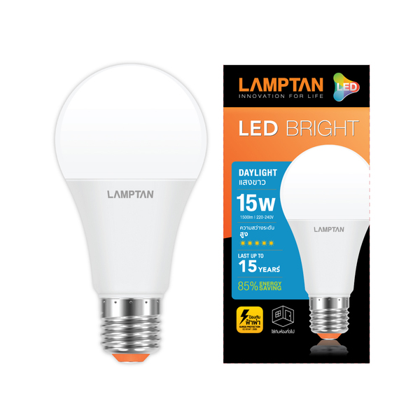 หลอดไฟ LED E27 15 วัตต์ เดย์ไลท์ ทรงลูกแพร์ LAMPTAN Bright