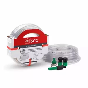 สายยางอ่อน 5/8 นิ้ว (5 หุน) PVC แฟนซี (พร้อมชุดหัวฉีด) เกษตร เอสซีจี ตราช้าง สีใส