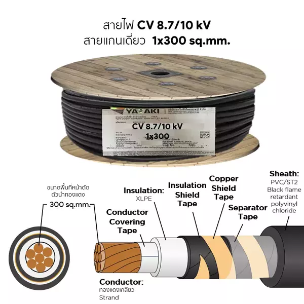 สายไฟ CV 1x300 ตร.มม. YAZAKI 8.7/15 kV