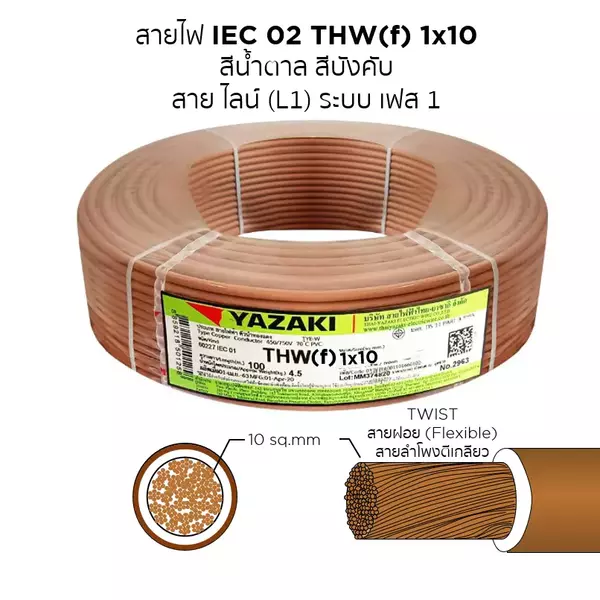 สายไฟ THW-F 1x10 ตร.มม. สีน้ำตาล YAZAKI