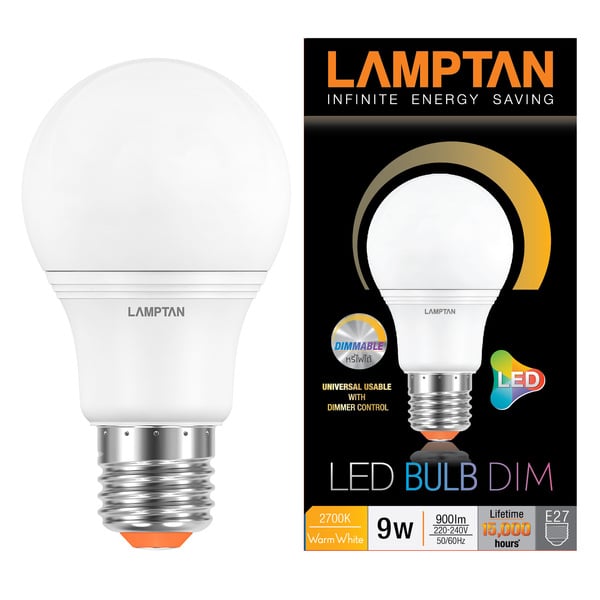 หลอดไฟ LED E27 9 วัตต์ วอร์มไวท์ ทรงลูกแพร์ LAMPTAN BULB DIM