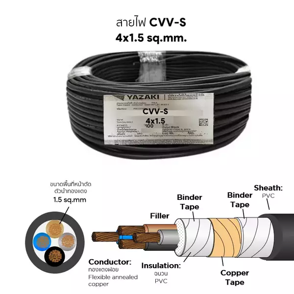 สายไฟ CVV-S 4x1.5 ตร.มม. YAZAKI