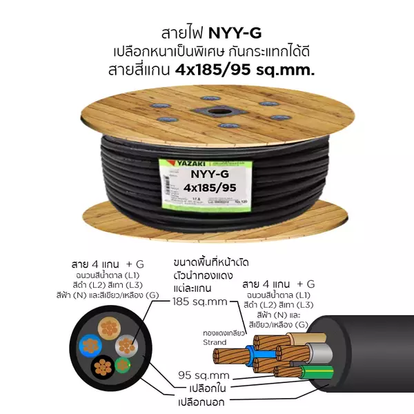 สายไฟ NYY-G 4x185/95 ตร.มม. YAZAKI