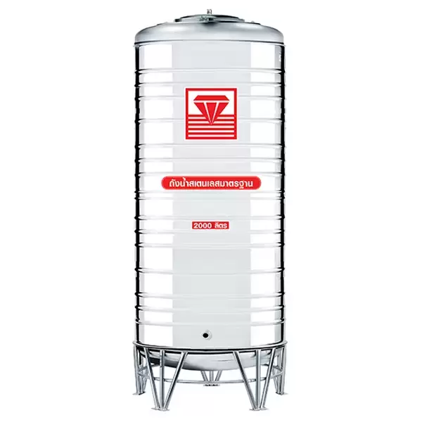 ถังเก็บน้ำสแตนเลส ตราเพชร 2000 ลิตร รุ่นพื้นนูน ทรงสูง DMCX