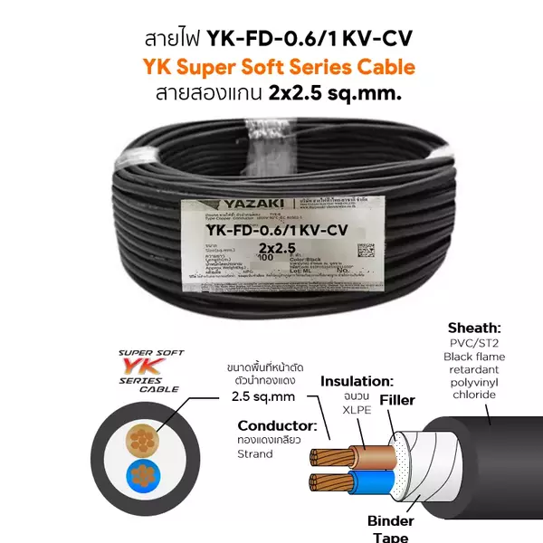 สายไฟ YK FD-CV 2x2.5 ตร.มม. YAZAKI 0.6/1 kV
