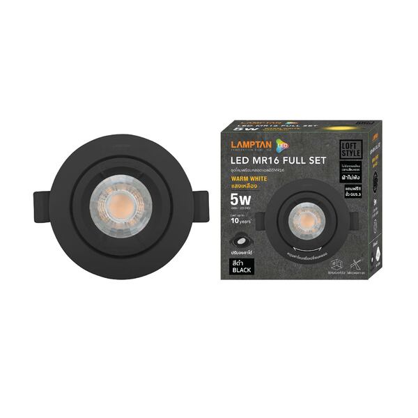 ดาวน์ไลท์ LED LAMPTAN MR16 FULL SET 5 วัตต์ WARMWHITE 3.5 นิ้ว สีดำ กลม