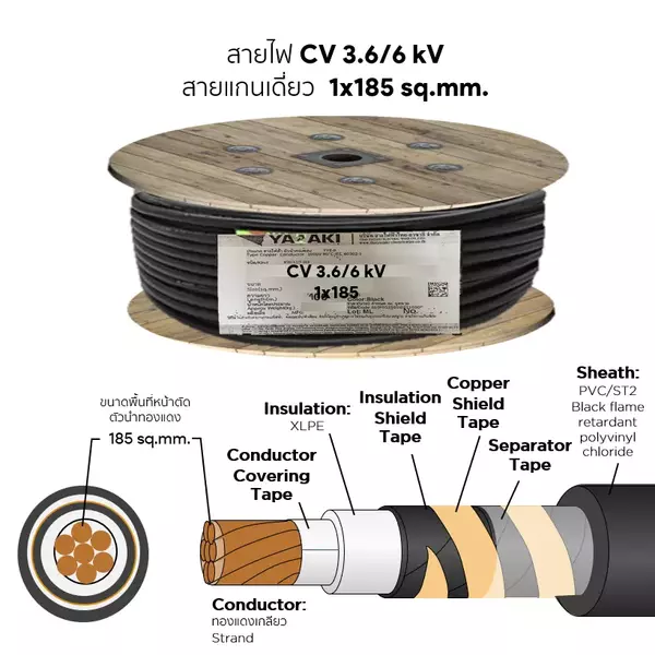 สายไฟ CV 1x185 ตร.มม. YAZAKI 3.6/6 kV