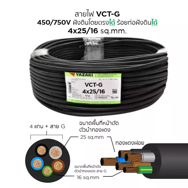 สายไฟ VCT-G 4x25/16 ตร.มม. YAZAKI