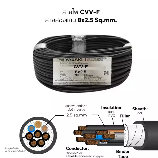 สายไฟ CVV-F 8x2.5 ตร.มม. YAZAKI