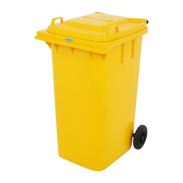 ถังขยะเหลี่ยม ฝาเปิด-ปิด มีล้อ ACCO 240L สีเหลือง