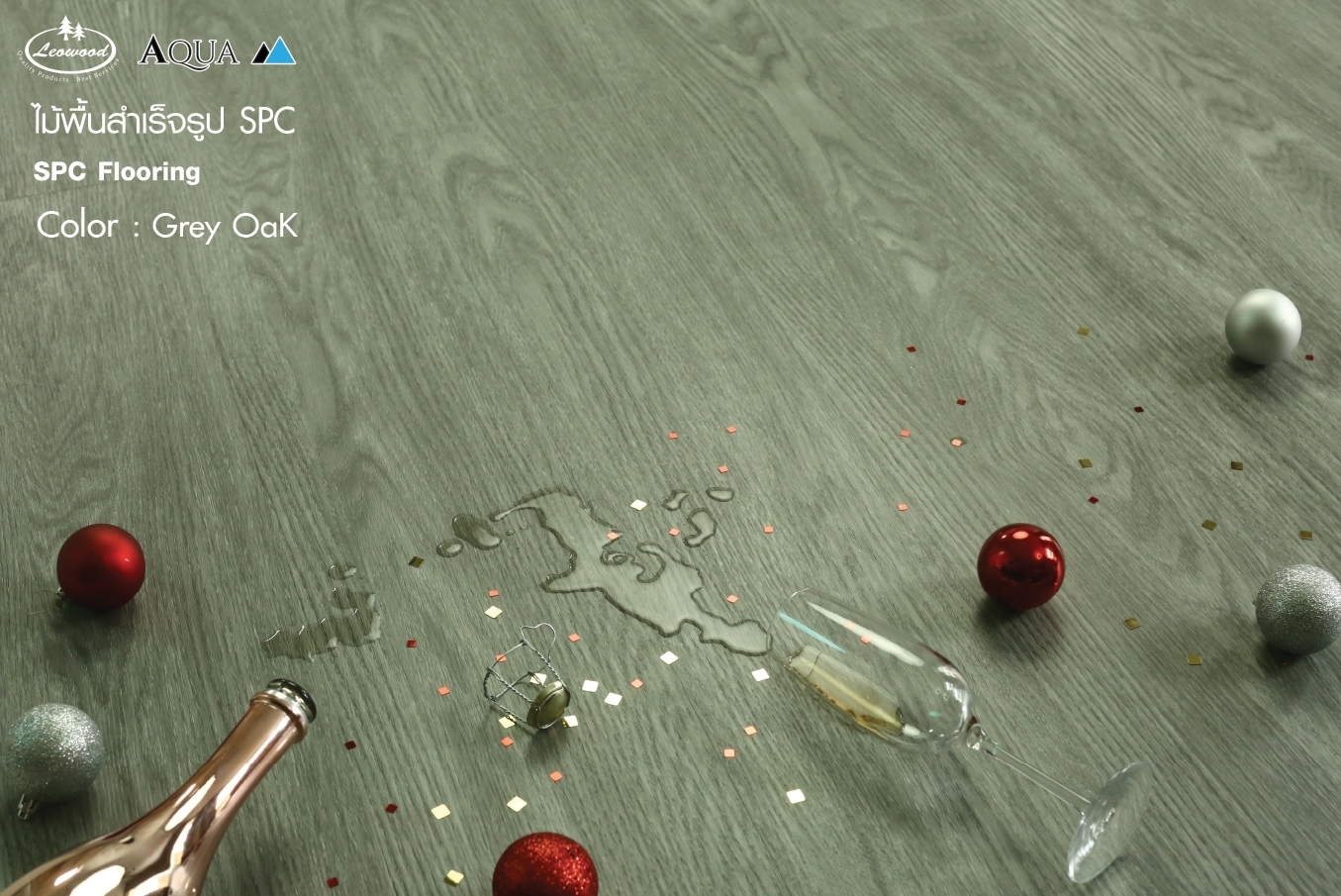 ไม้พื้น Aqua สี Grey Oak AQGO4 ความหนา 4 มม.