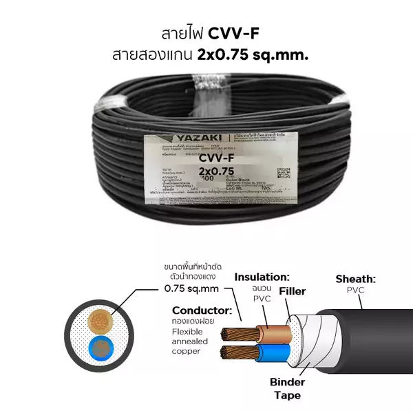 สายไฟ CVV-F 2x0.75 ตร.มม. YAZAKI
