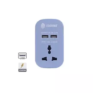คุณลักษณะของ ปลั๊กแปลงขาแบน พร้อม USB 2.4A รุ่น PU-10AB สีฟ้า TOSHINO