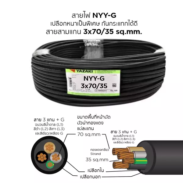 สายไฟ NYY-G 3x70/35 ตร.มม. YAZAKI