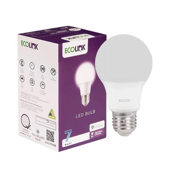 หลอดไฟ LED E27 7 วัตต์ เดย์ไลท์ ทรงลูกแพร์ ECOLINK A60