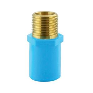ข้อต่อตรงเกลียวนอกทองเหลือง-หนา SCG 1 1/4 นิ้ว สีฟ้า