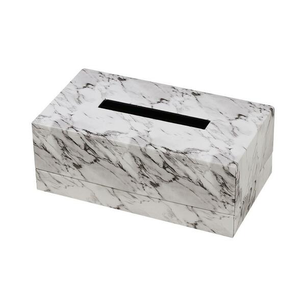 กล่องทิชชูแผ่น PVC KAN LEATHER MARBLE สีขาว