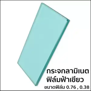 กระจกลามิเนต หนา 3+3 มม. ฟิล์มใส PVB สีฟ้าเขียว