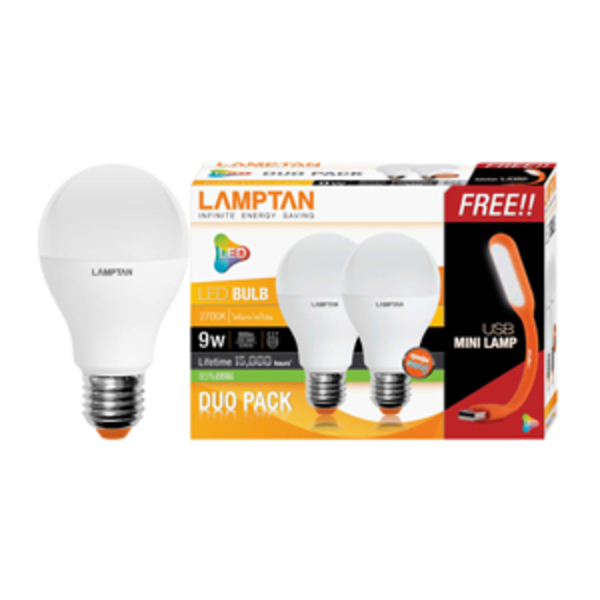 หลอดไฟ LED E27 9 วัตต์ วอร์มไวท์ ทรงลูกแพร์ LAMPTAN BULB GLOSS