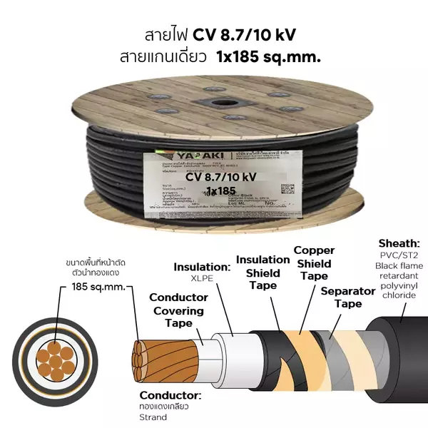 สายไฟ CV 1x185 ตร.มม. YAZAKI 12/20 kV