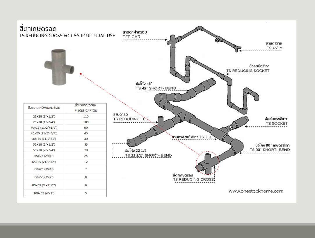 สี่ตาลด PVC สีเทา 1 นิ้ว ท่อน้ำไทย