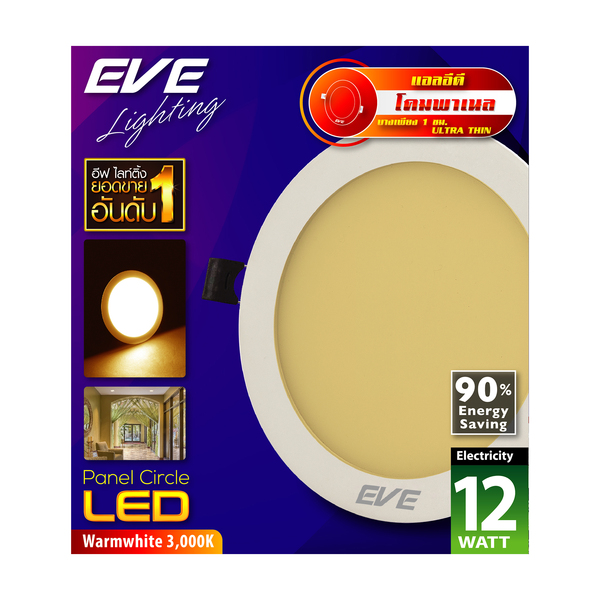 ดาวน์ไลท์ EVE PANEL CIRCLE LED 12 วัตต์ WARMWHITE 5 นิ้ว กลม สีขาว