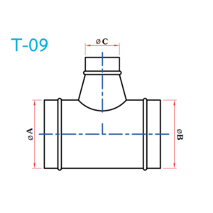 อุปกรณ์ท่อลม T-09 3ทางT ฐานเอียง 2 ด้าน