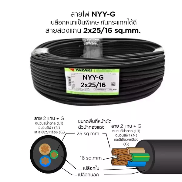 สายไฟ NYY-G 2x25/16 ตร.มม. YAZAKI