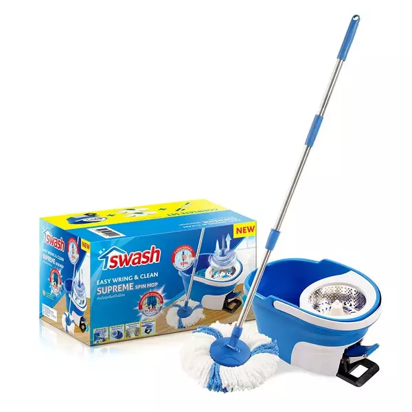 ชุดอุปกรณ์ถังปั่นพร้อมไม้ม็อบ SWASH SUPREME สีฟ้า