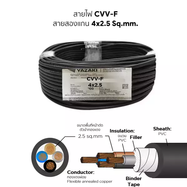 สายไฟ CVV-F 4x2.5 ตร.มม. YAZAKI