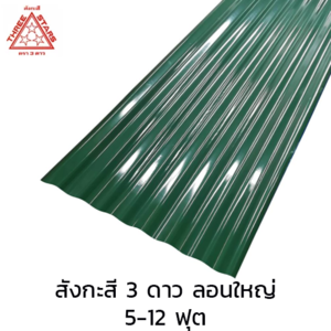 แผ่นสังกะสี ลอนใหญ่ สีเขียว ตรา 3ดาวขนาดต่างๆ