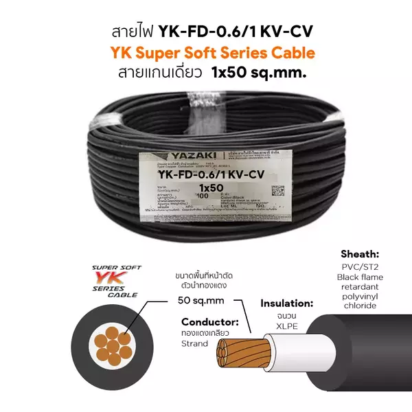สายไฟ YK FD-CV 1x50 ตร.มม. YAZAKI 0.6/1 kV