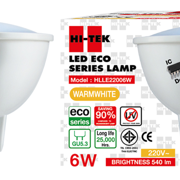 หลอดไฟ LED GU5.3 6 วัตต์ วอร์มไวท์ MR16 YELLOW LIGHT HI-TEK ECO 220V