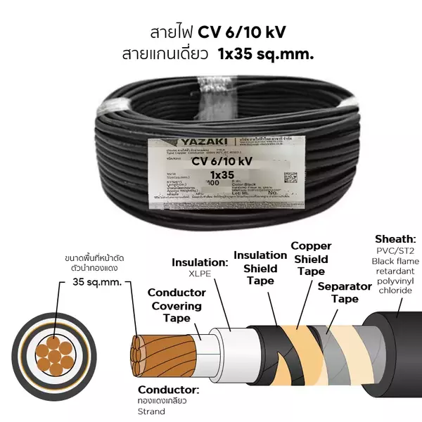 สายไฟ CV 1x35 ตร.มม. YAZAKI 6/10 kV