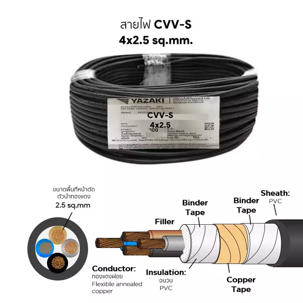 สายไฟ CVV-S 4x2.5 ตร.มม. YAZAKI