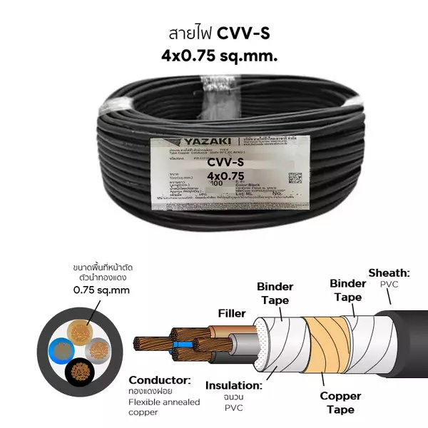 สายไฟ CVV-S 4x0.75 ตร.มม. YAZAKI